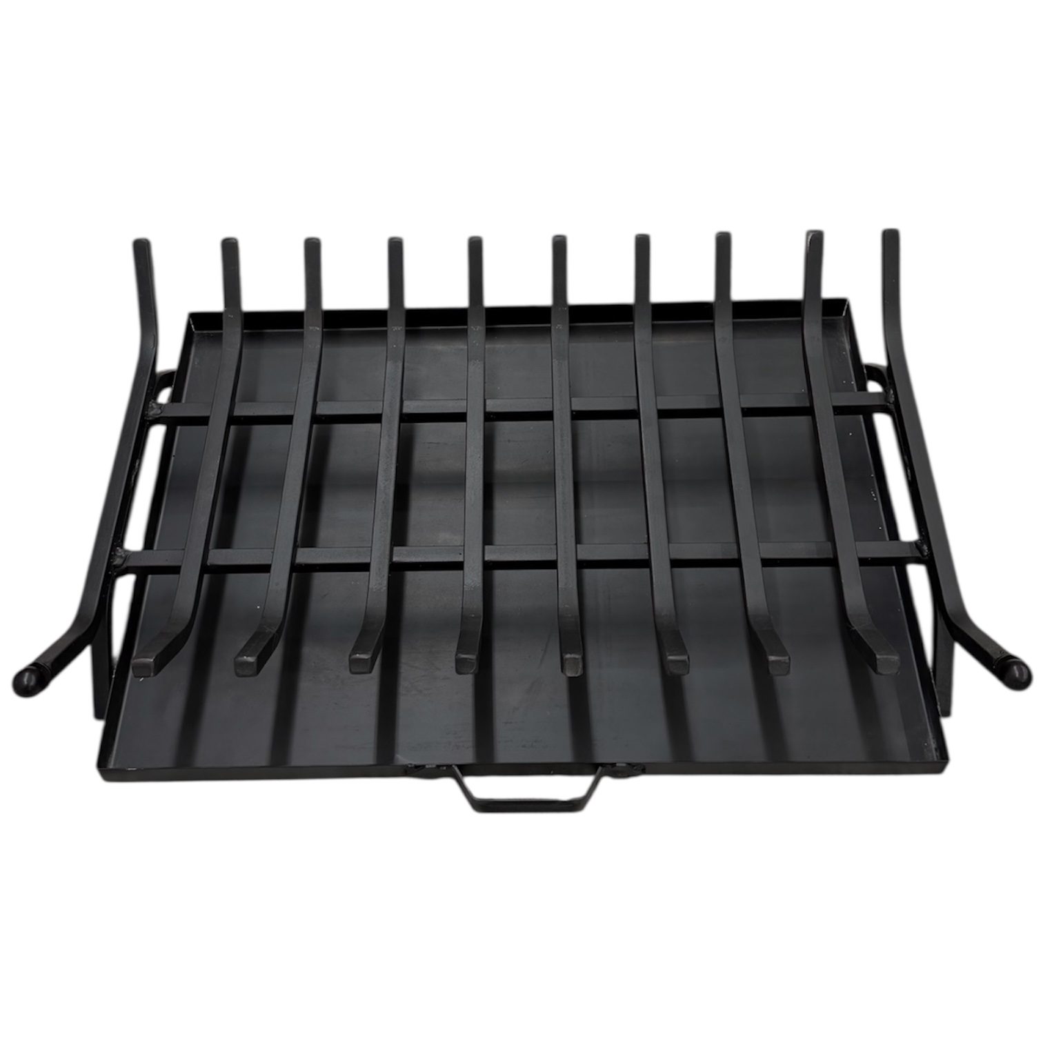 Σχάρα τζακιού σιδερένια μασίφ, με δίσκο συλλογής στάχτης αποσπώμενο.