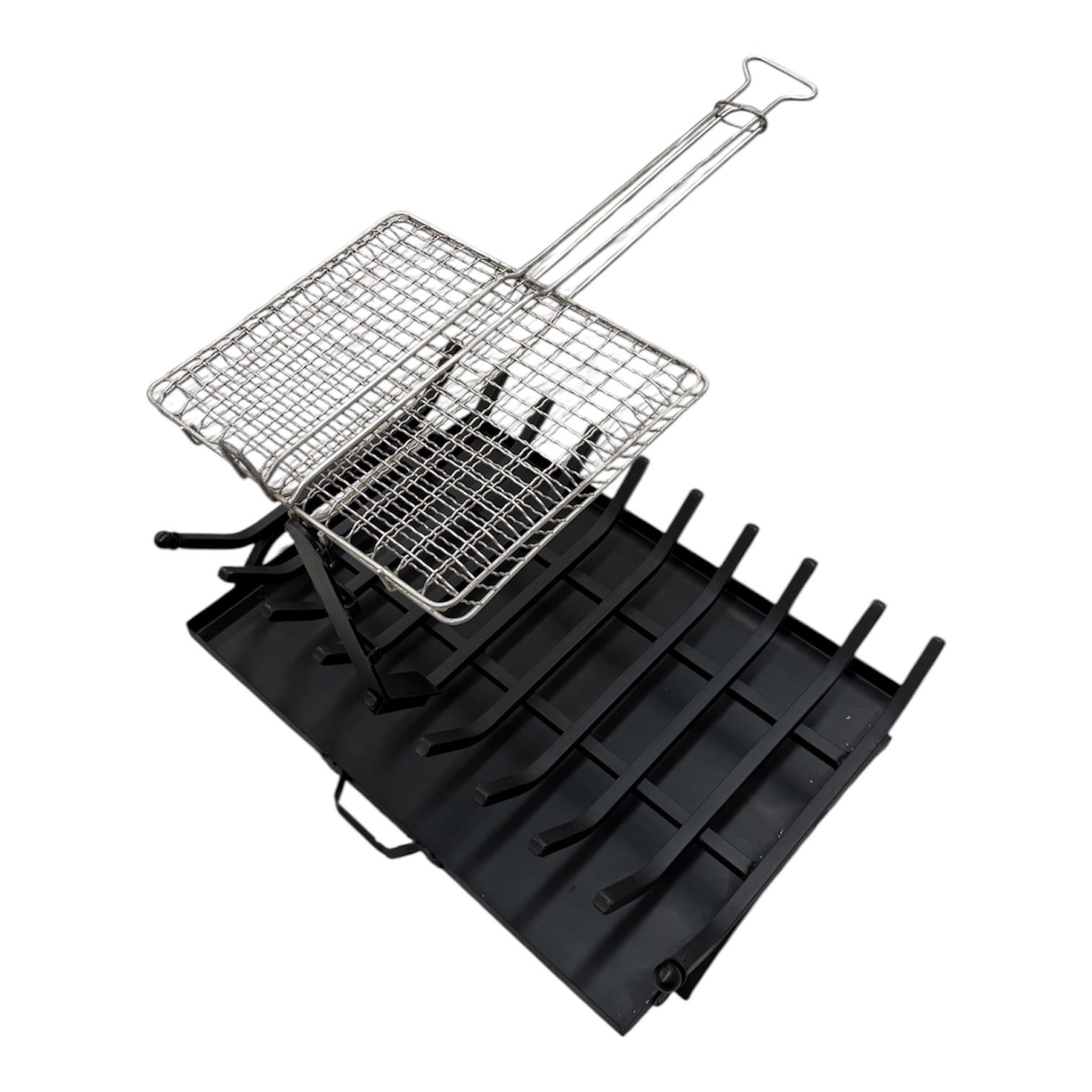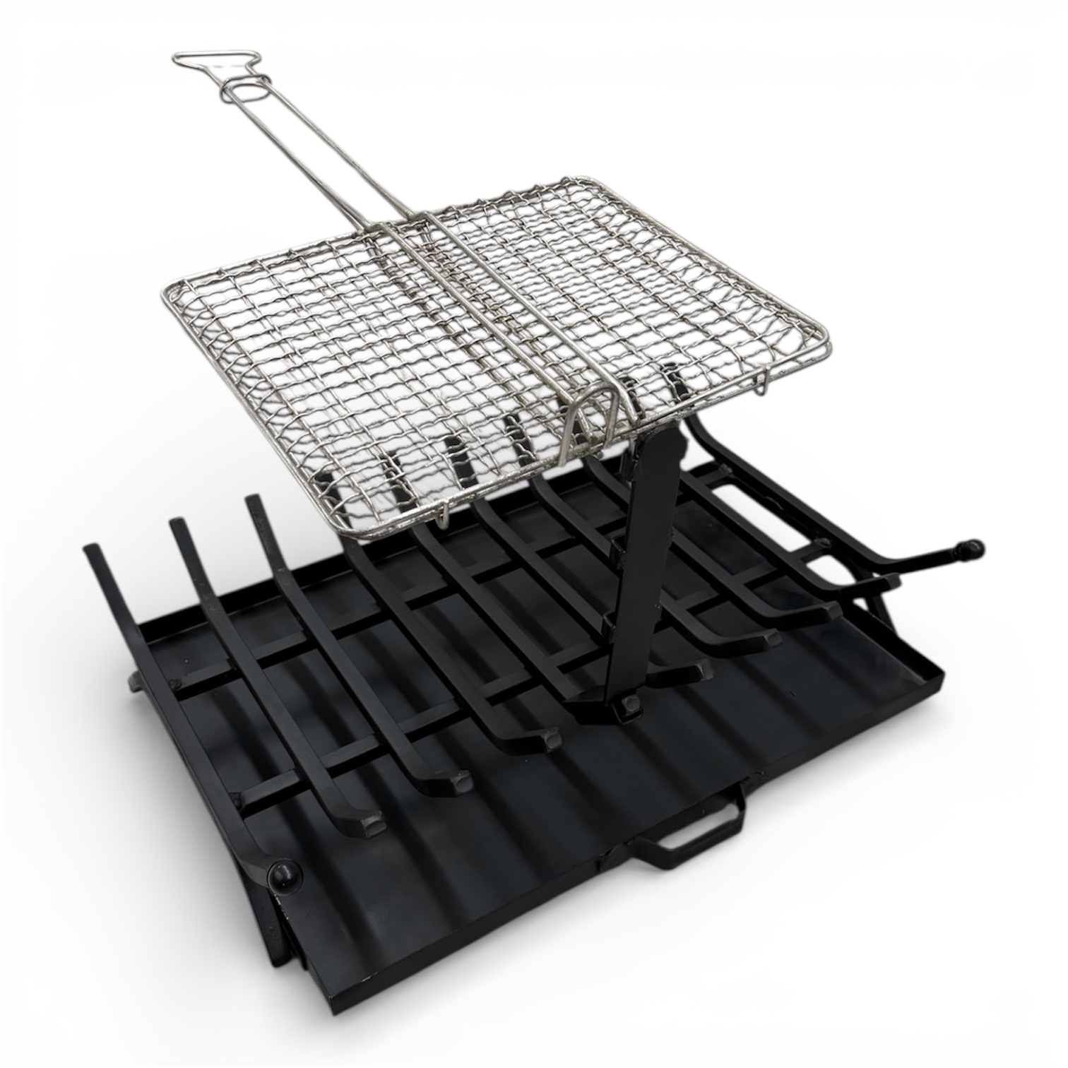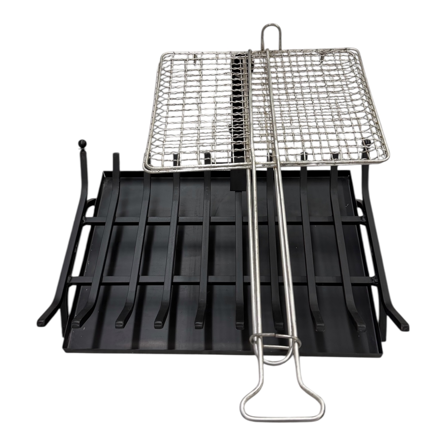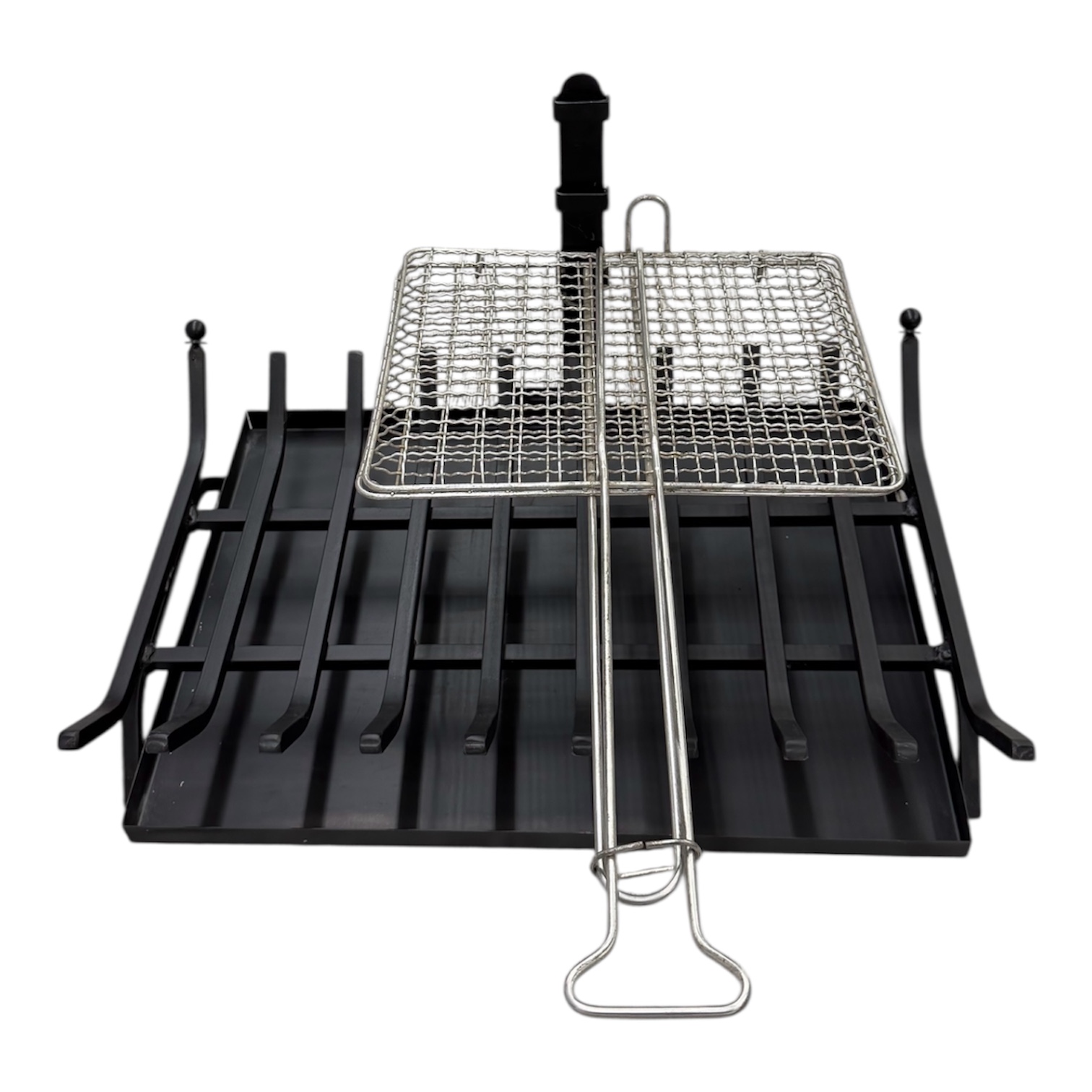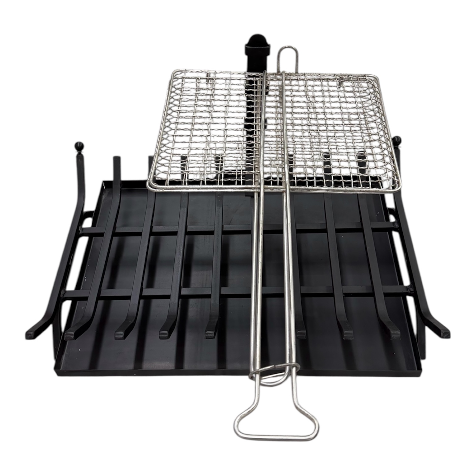 Μεταλλική σχάρα τζακιού ίσια 50x42cm με Στυλοβάτη 3 Θέσεων, Ψησταριά & Σταχτοθήκη
