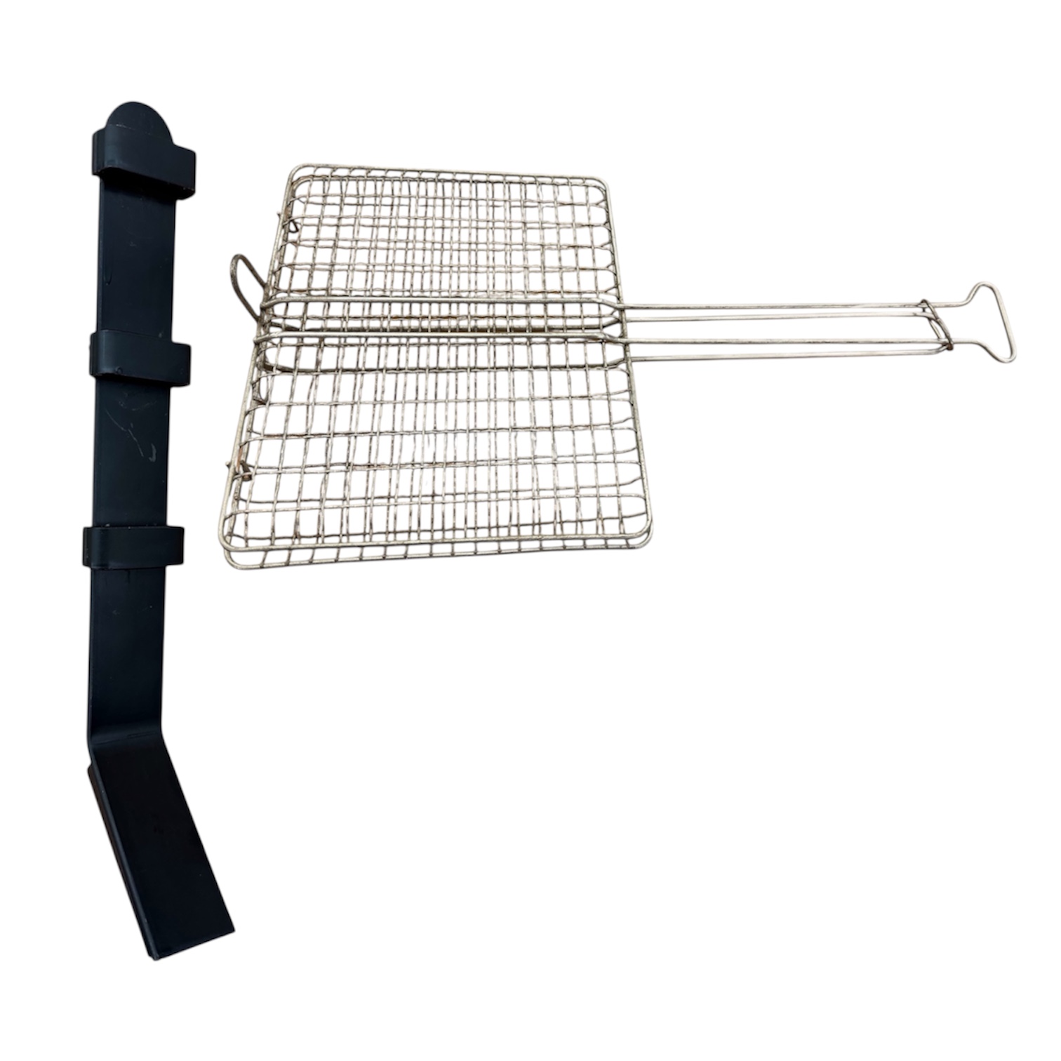 Η σχάρα είναι σχεδιασμένη ώστε να δέχεται ψησταριά, προσφέροντας τη δυνατότητα να ψήνετε κρέας ή άλλα τρόφιμα με ασφάλεια και έλεγχο της θερμοκρασίας, αξιοποιώντας τη φωτιά του τζακιού.