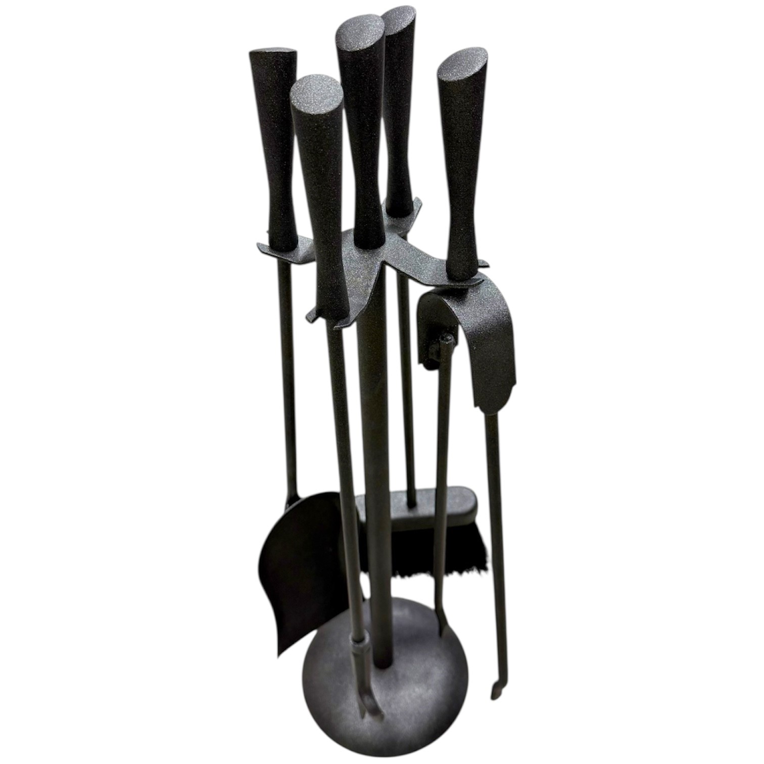 Σετ εργαλείων τζακιού με κρεμανταλά, σε ιδιαίτερη απόχρωση Αγάνα. Σταθερή μεταλλική κατασκευή με χειρολαβή μεταφοράς και ενισχυμένα εργαλεία, ιδανικά για λειτουργικότητα και αισθητική δίπλα στο τζάκι.